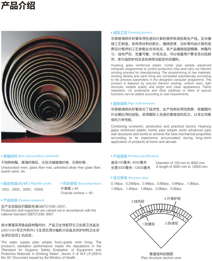 產品名稱: 玻璃纖維增強塑料管